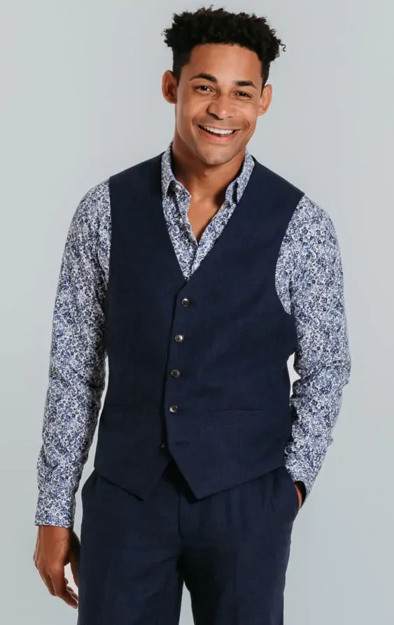 Navy Linen Waistcoat